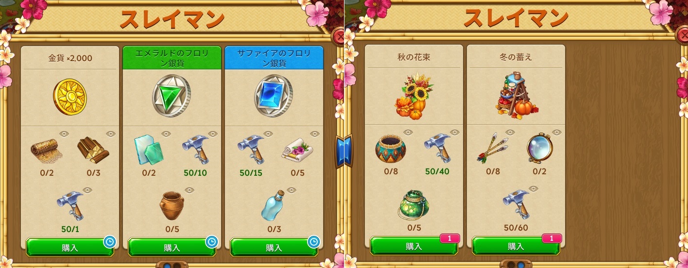 | ① | 村人たちにごちそうを出す | 15 | x25 |